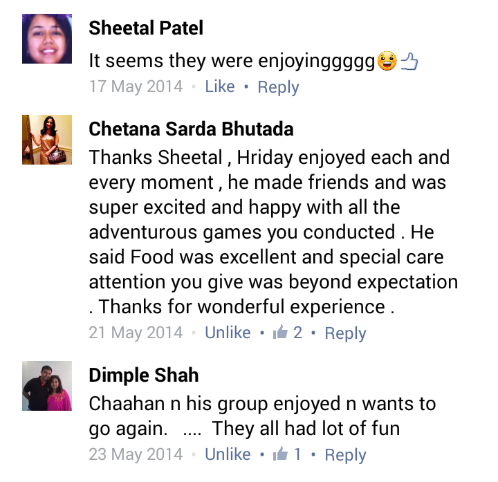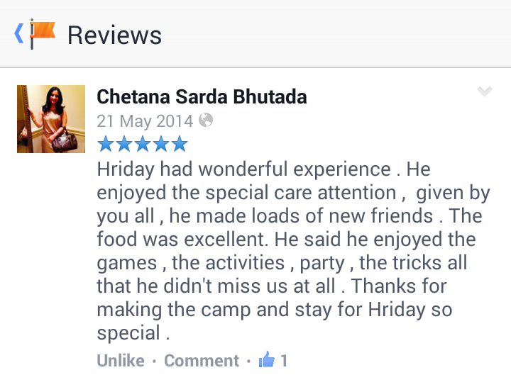 “Had enrolled my son for the tini mini camp at Khandala and it was very well organised and kids were very well taken care of and he enjoyed a lot. Good job.” November 4, 2009