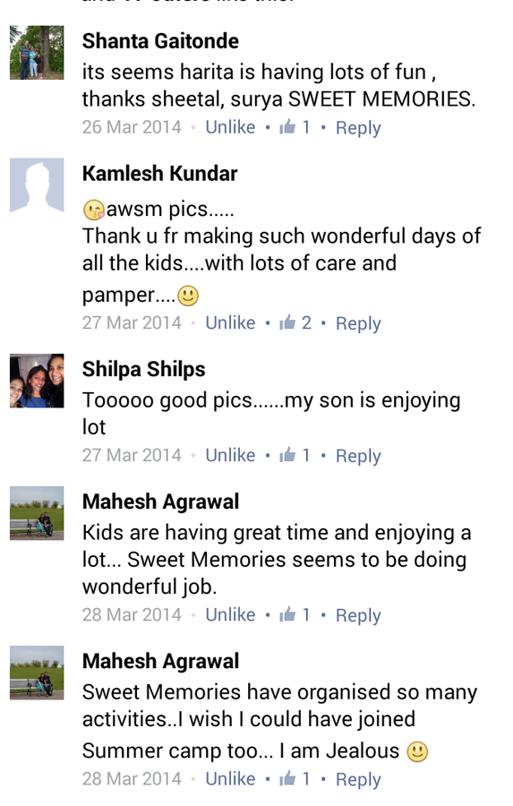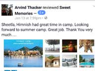 I appreciate the personal attention given to children in the camp. I Congratulate the team of Sweet-Memories for their Sincere Efforts and Wishing them Good Luck for Their Future Endeavours. Looking forward to send my son Ansh for the Camp during Summer.
